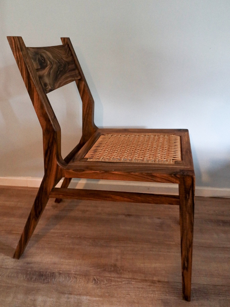 Uitgevoerd in Inlands esdoornhout en biezen door Peter van 't Hoff